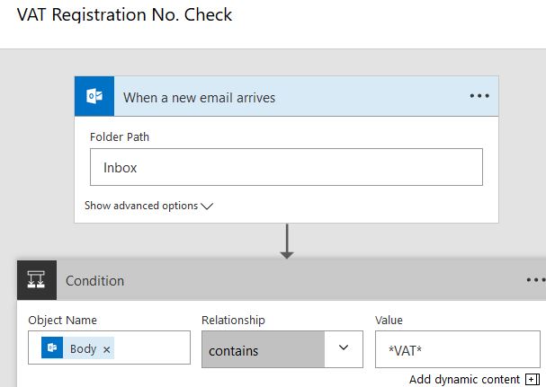 + I’m checking if the body of the mail contains the phrase “*VAT*”: