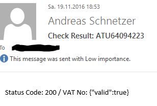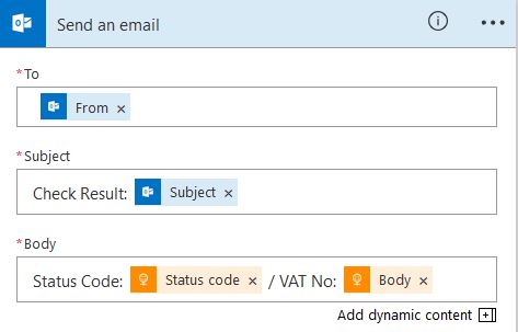 + If so I’m calling the API where subject is the address of the API + the subject of the mail received which in fact is the VAT Reg. No. to check: