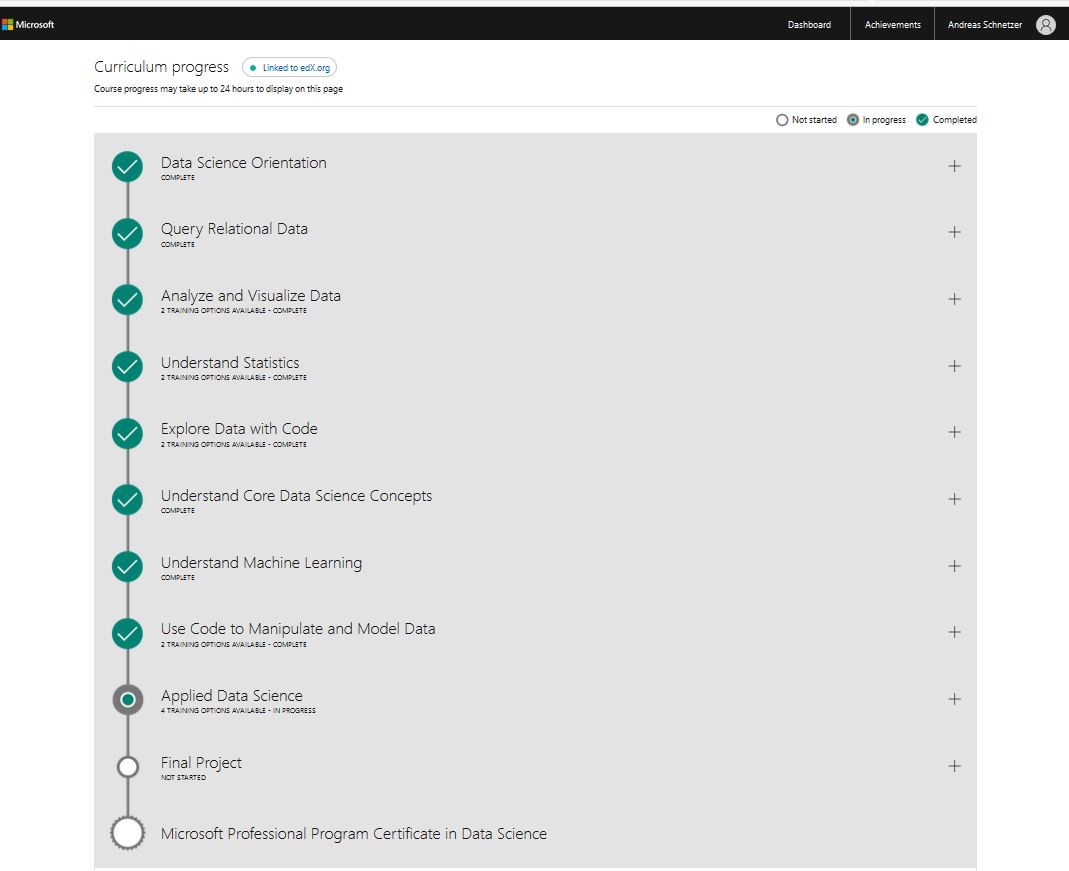 Überdies ist das eine tolle Ergänzung zu meinem Data Science Kurs, welcher derzeit leider aufgrund von massivem Alltagsstress etwas dahindümpelt.