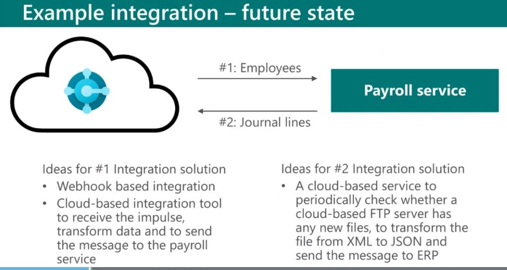 The first picture shows a very familiar scenario. I think most NAV developers including myself will be fine with this solution. But the point is we have a whole set of new tools available which we should get familiar with. And these tools can also be a great help even in On Prem. Power Automate, Logic Apps, Azure functions…